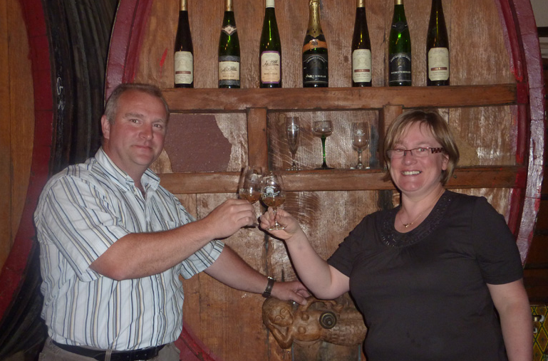 Un jour, un couple se trouve sous un orage à Gueberschwihr et il entre par hasard au caveau. Ils sont repartis avec 10 cartons et depuis on ne se quitte plus!
